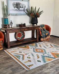 Our newest rug Interlaced Horizon is here! Not only does it have an incredibly beautiful southwestern design, the color pallet is going to bring warmth to any room you put it in. The cream base really sets the tone for the tans, rust, mustard & hints of jade to really shine and stand out. This beauty will bring life to any room you put it in.