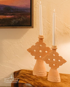 Terra Cotta Cross Candlesticks